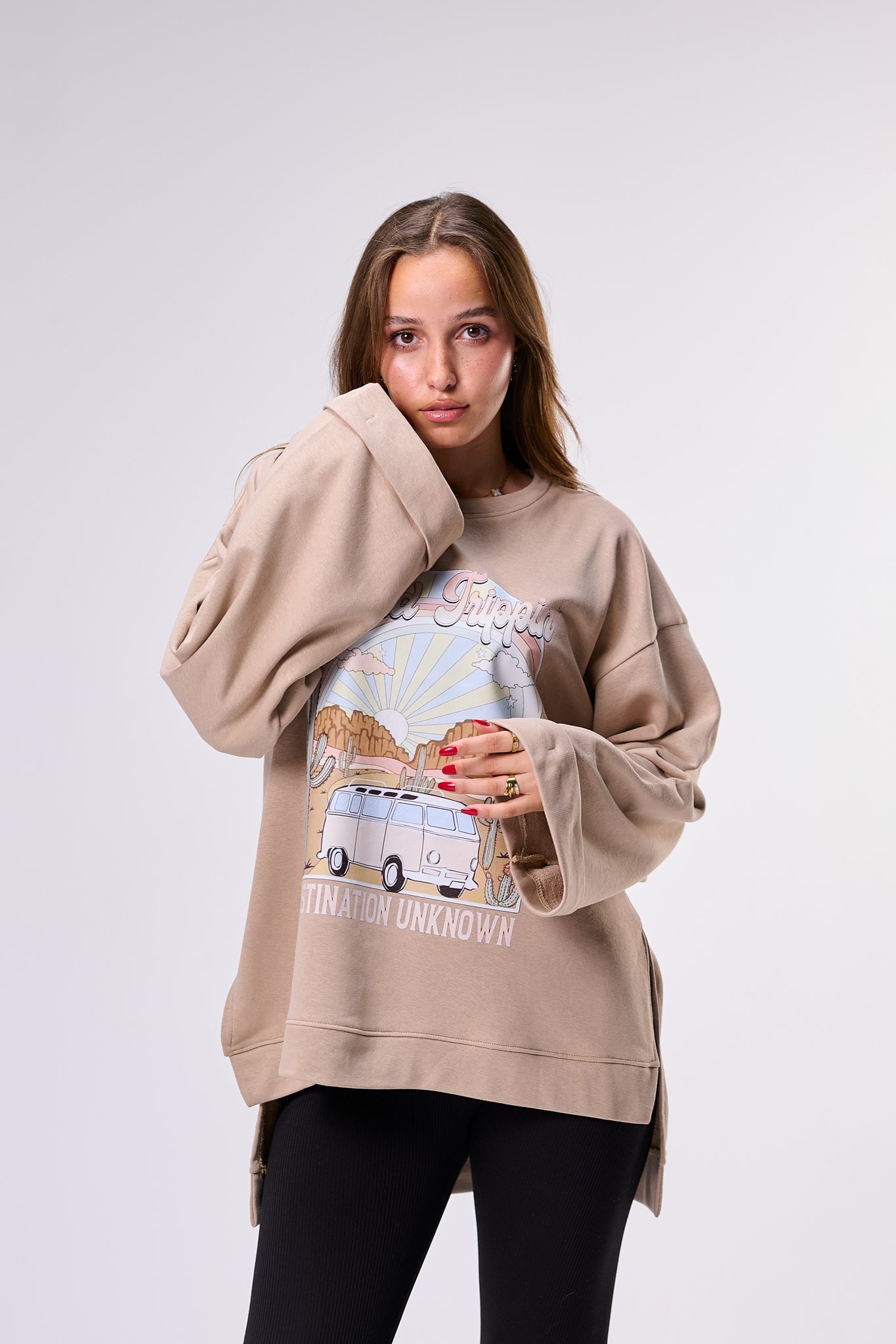 Road trip– Oversized Printed Cotton T-shirt | 100% Comfy Fabric – Long Back with Side Slits