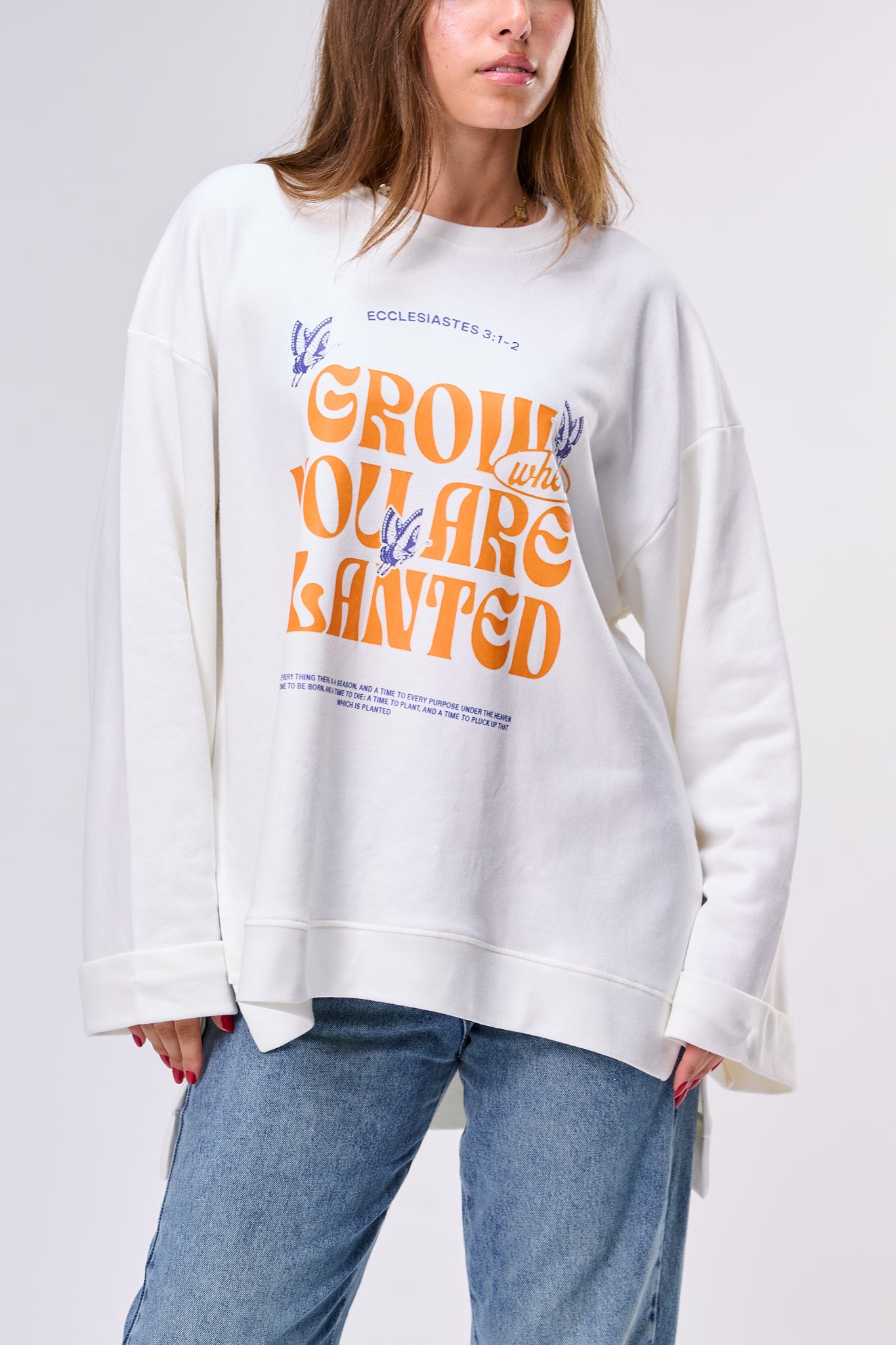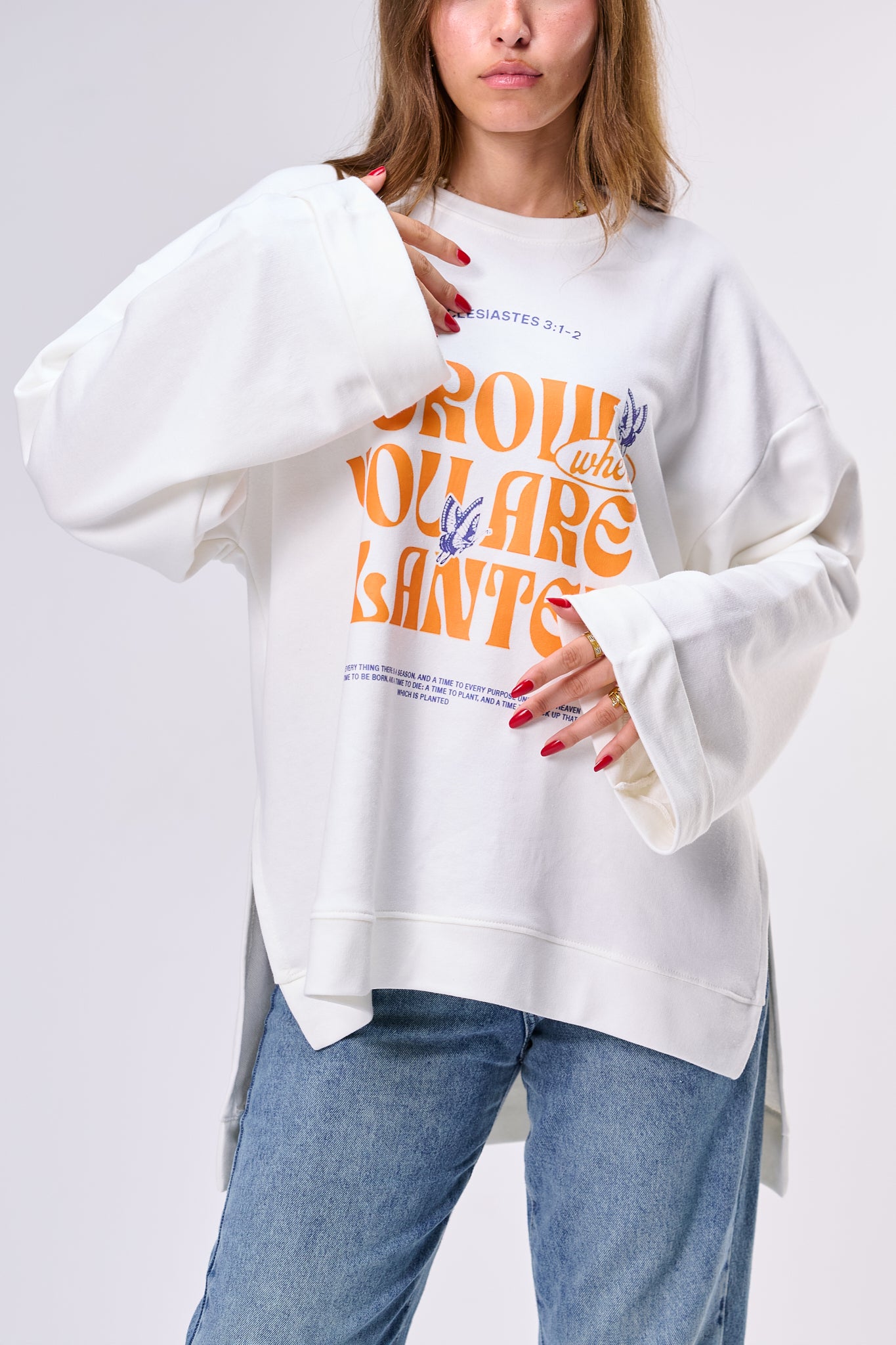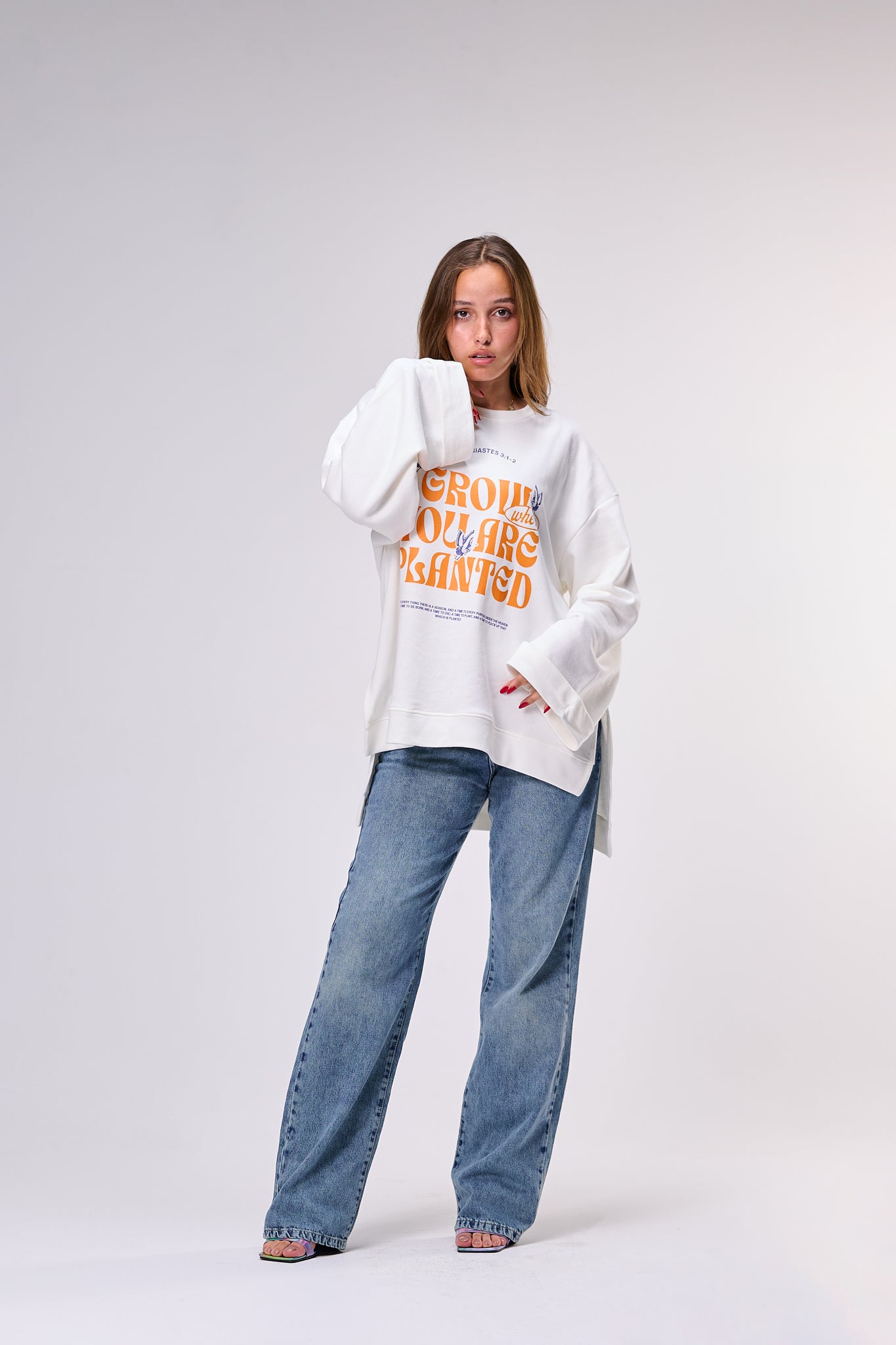 “Grow” – Oversized Printed Cotton T-shirt | 100% Comfy Fabric – Long Back with Side Slits