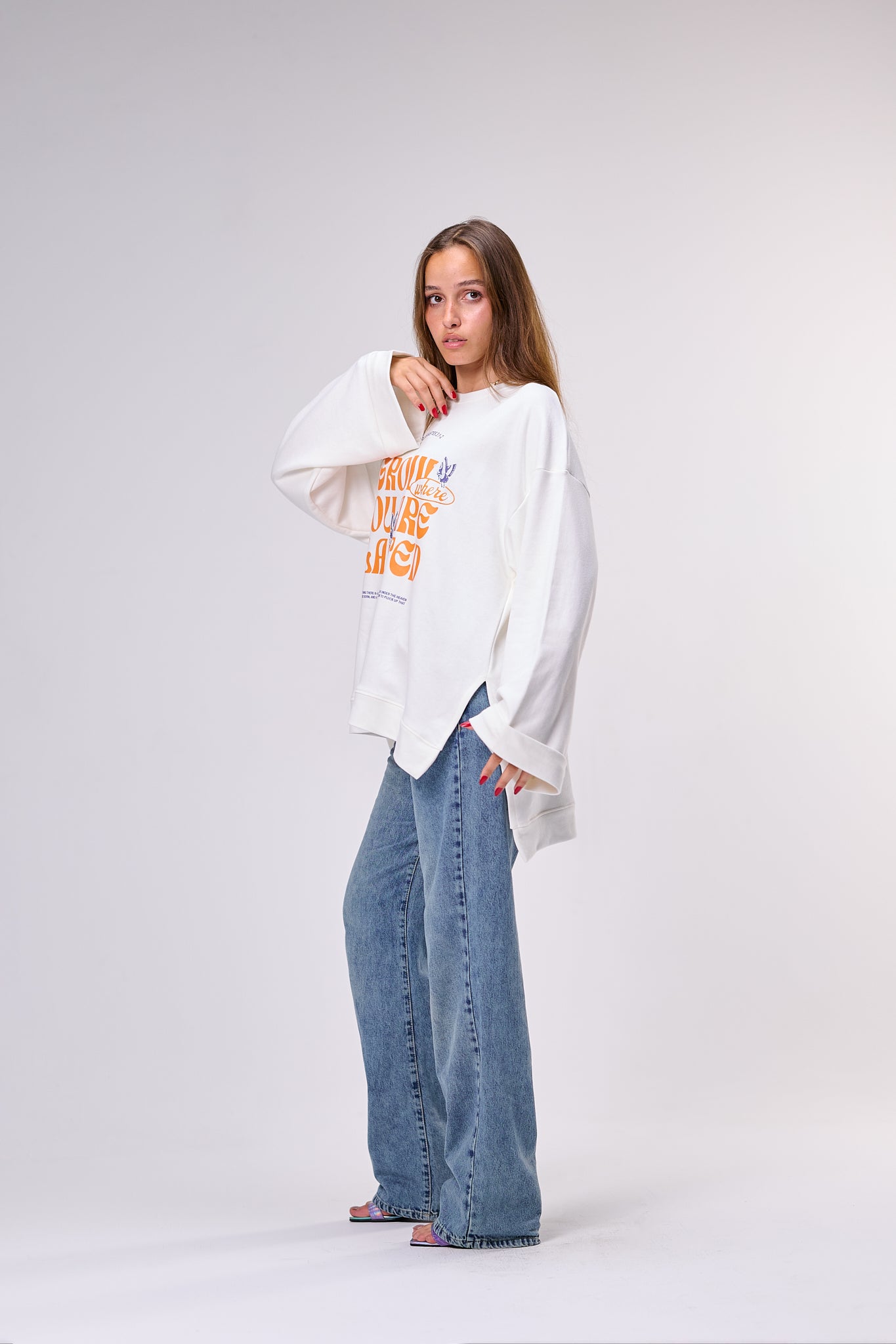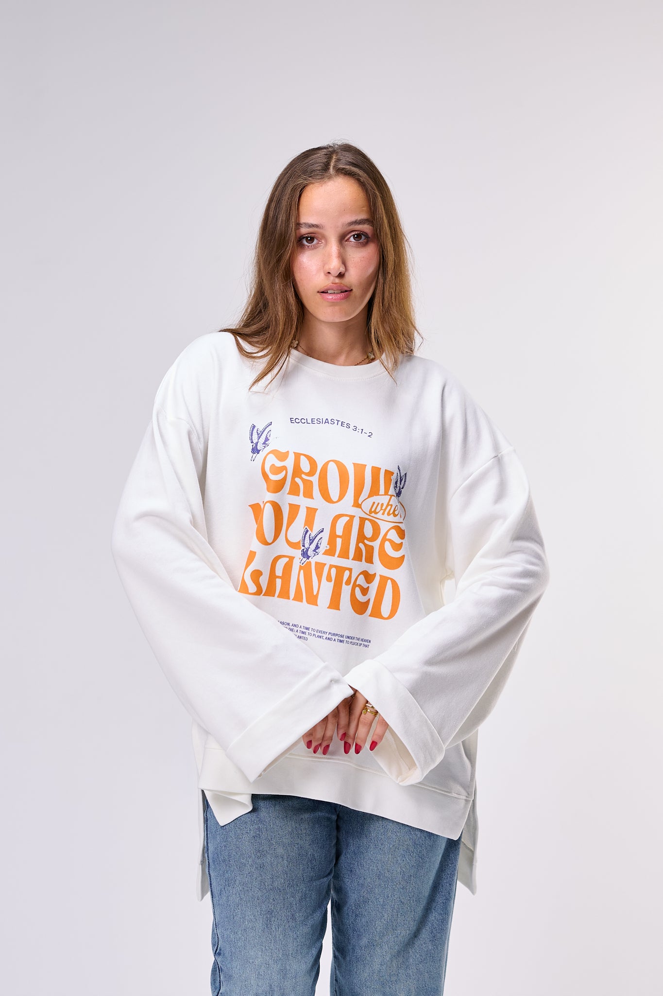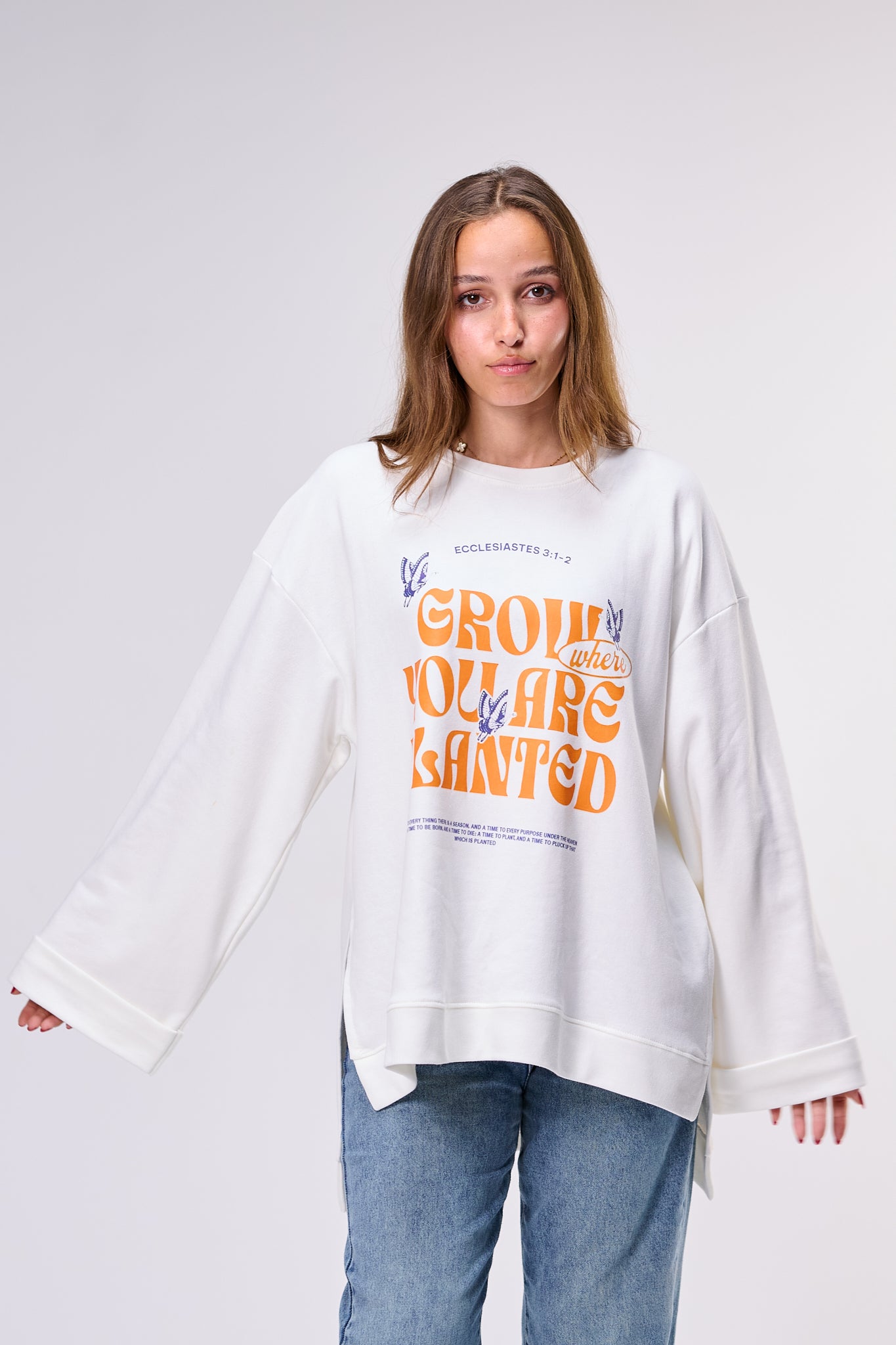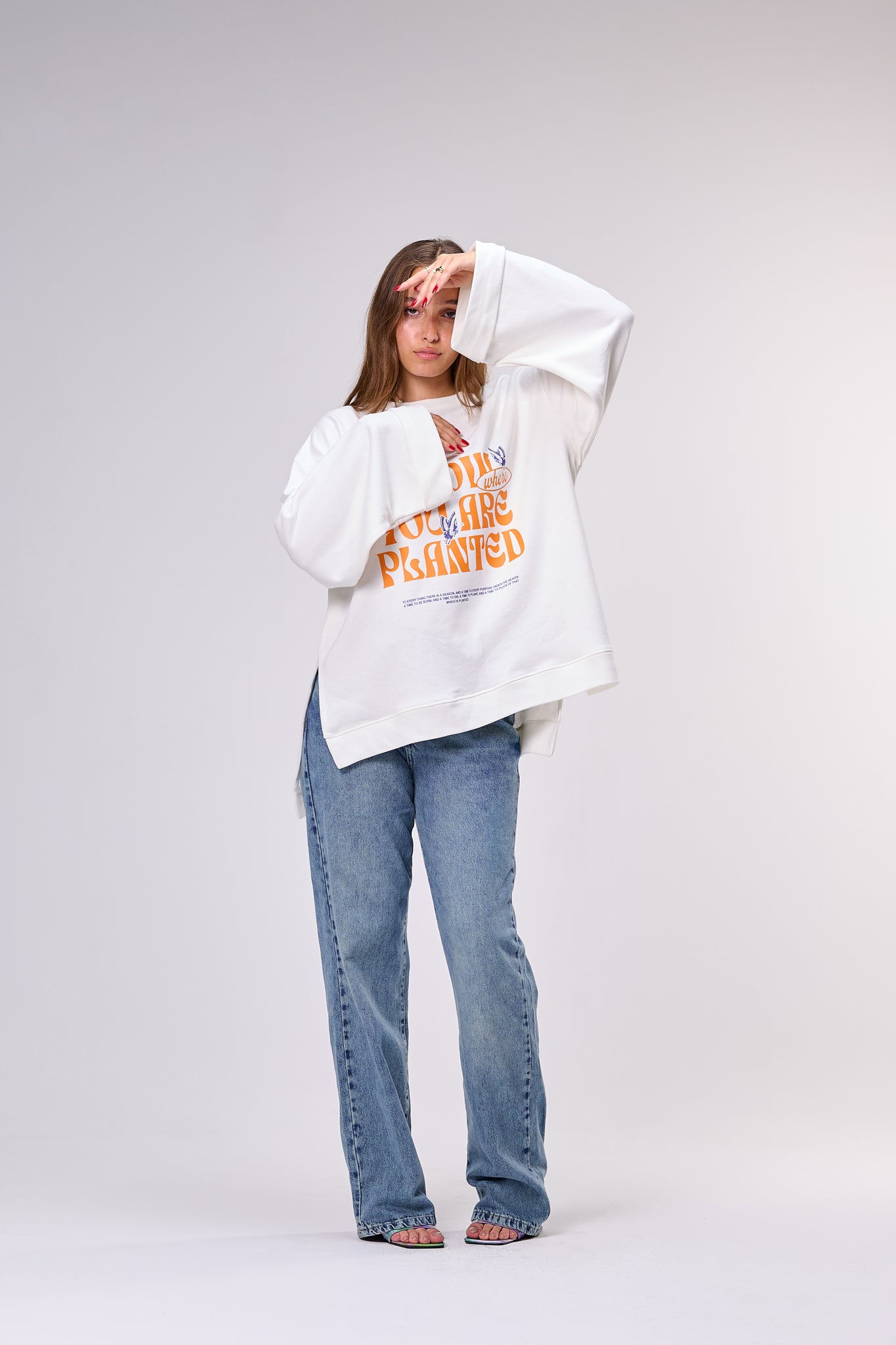 “Grow” – Oversized Printed Cotton T-shirt | 100% Comfy Fabric – Long Back with Side Slits