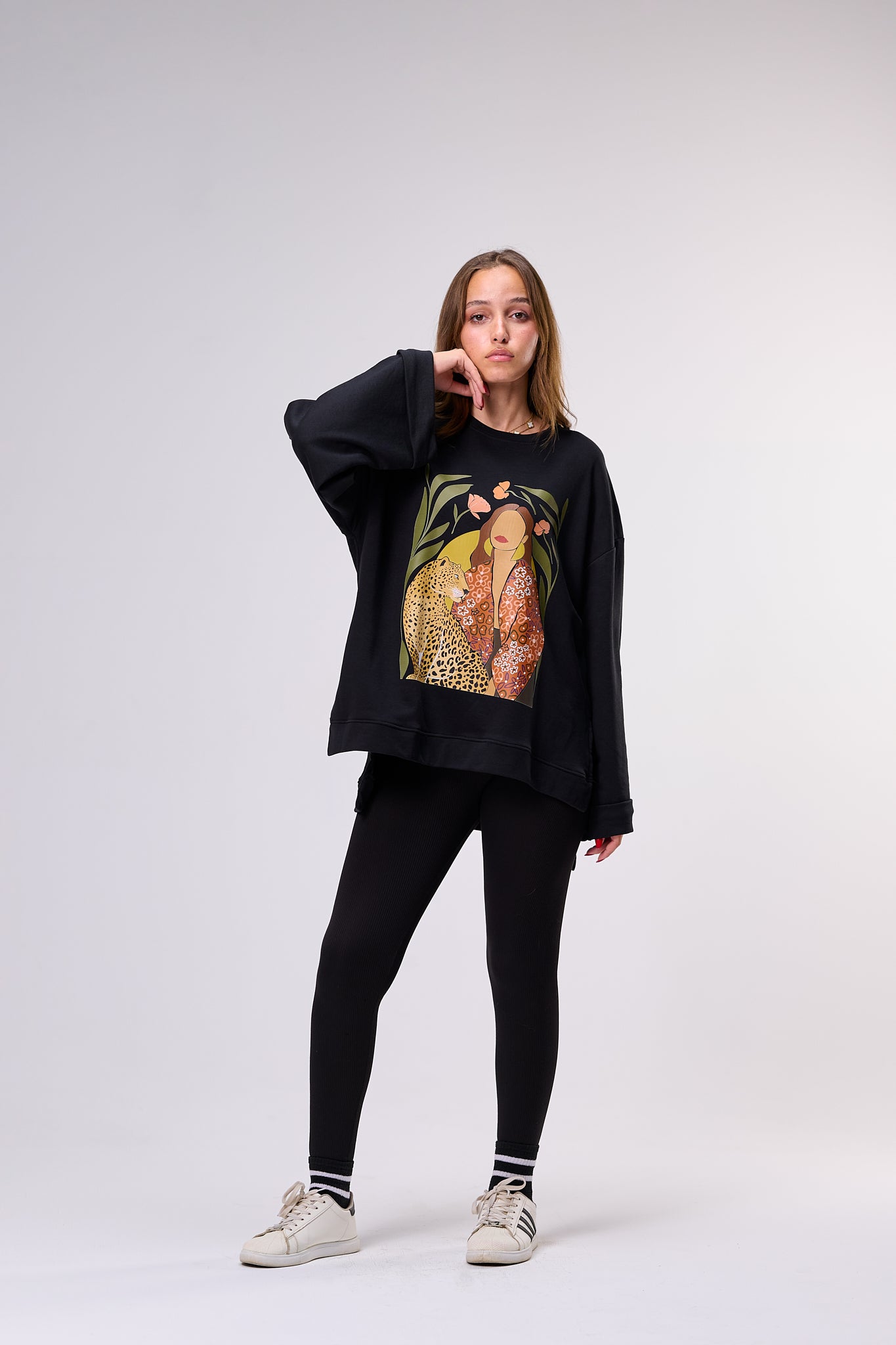 – Oversized Printed Cotton T-shirt | 100% Comfy Fabric – Long Back with Side Slits