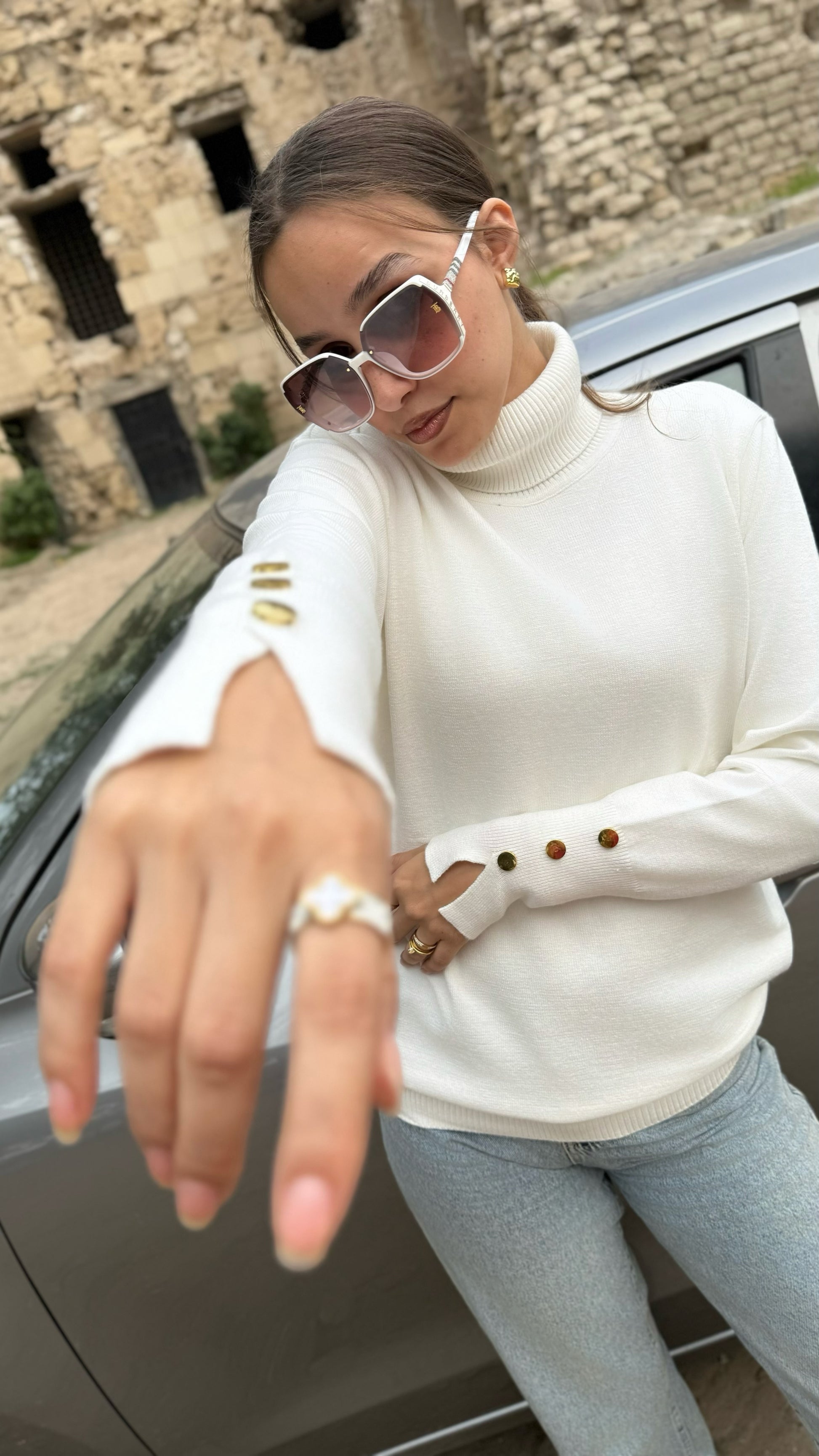 This versatile knit pullover combines timeless simplicity with elegant details, making it a must-have for your wardrobe. Designed with button accents on the sleeves and a stylish slit for added flair, this piece effortlessly blends comfort and sophistication.
