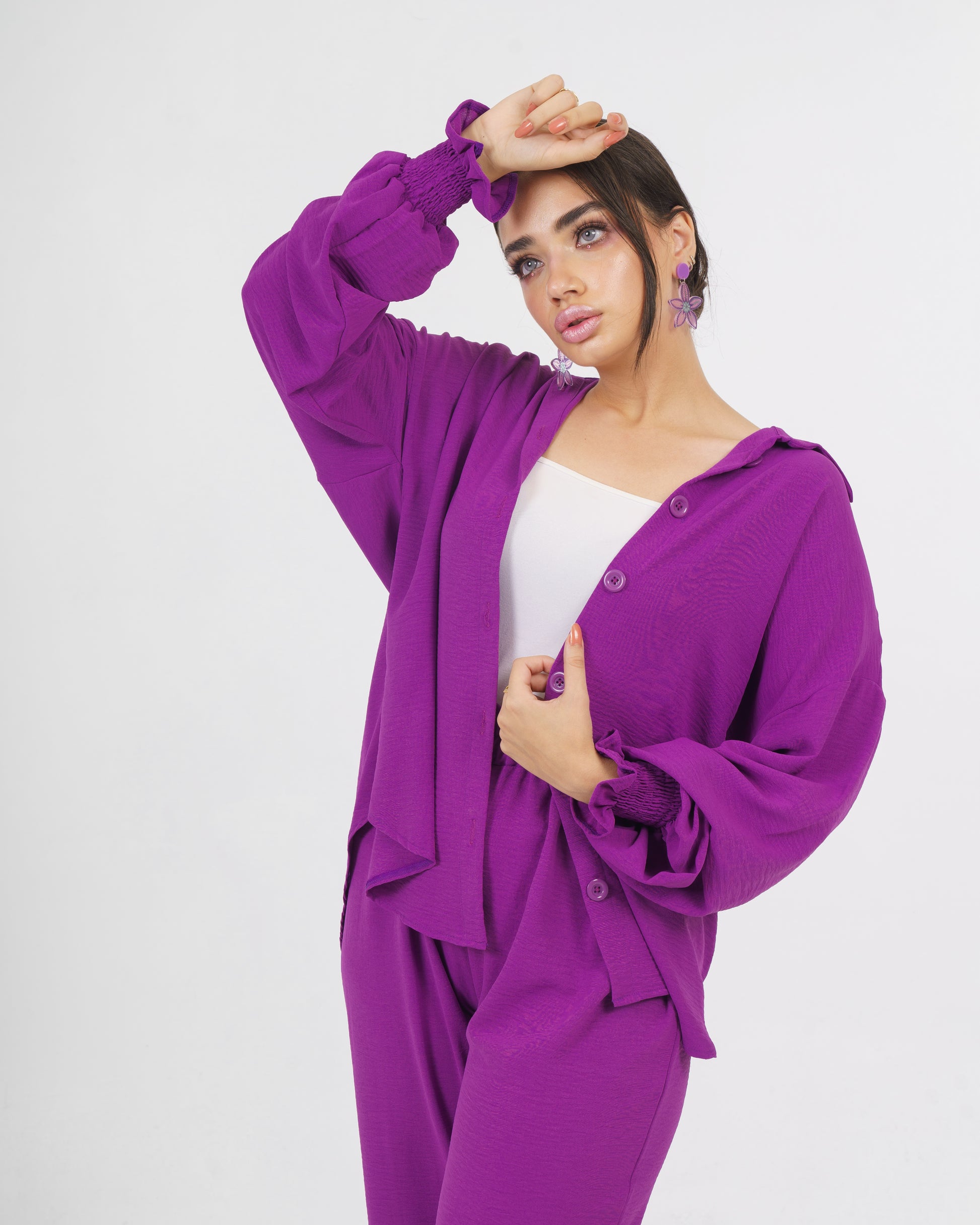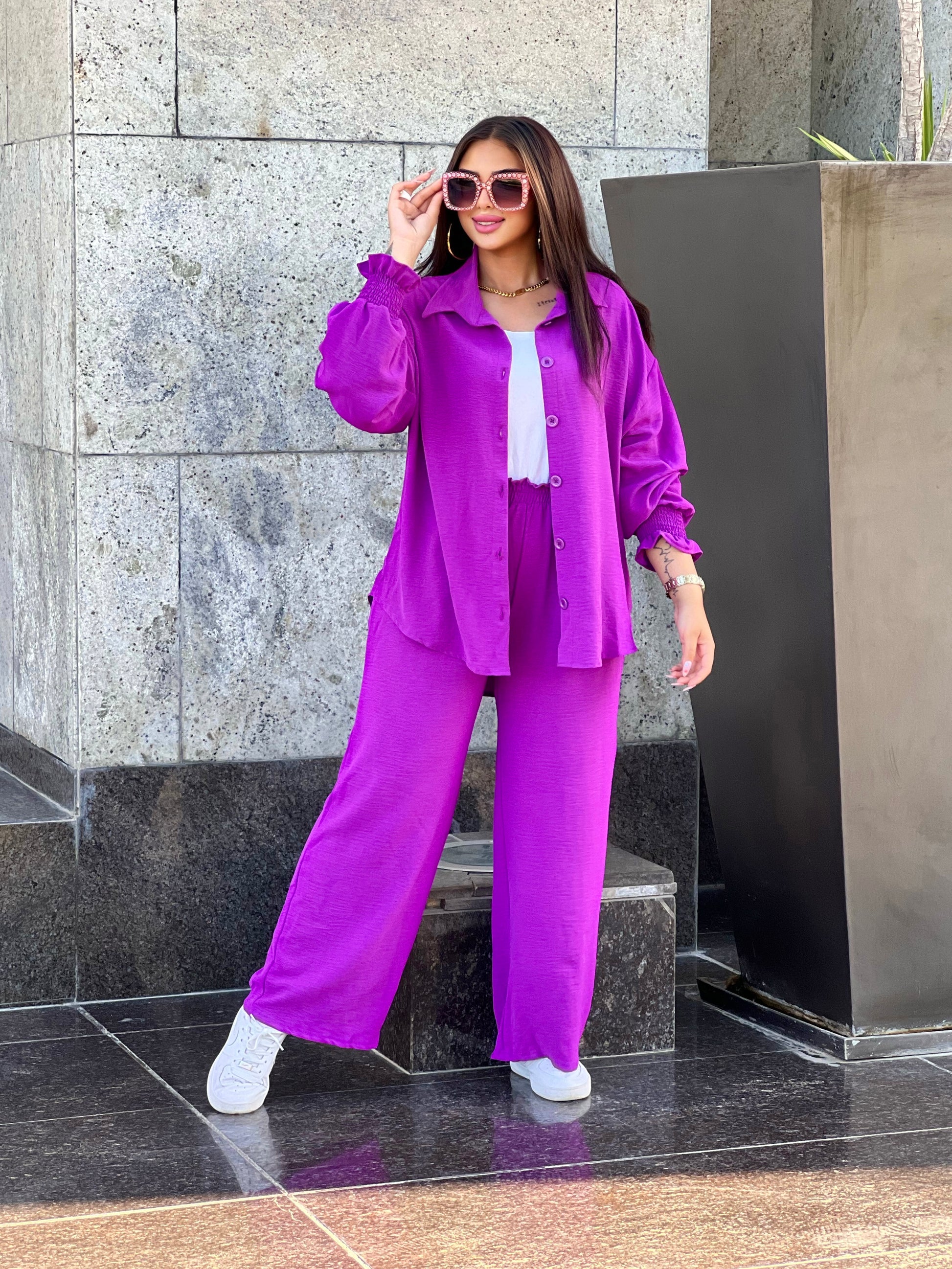 - Features: two-piece, wide-leg pants oversized, long relaxed sleeves.