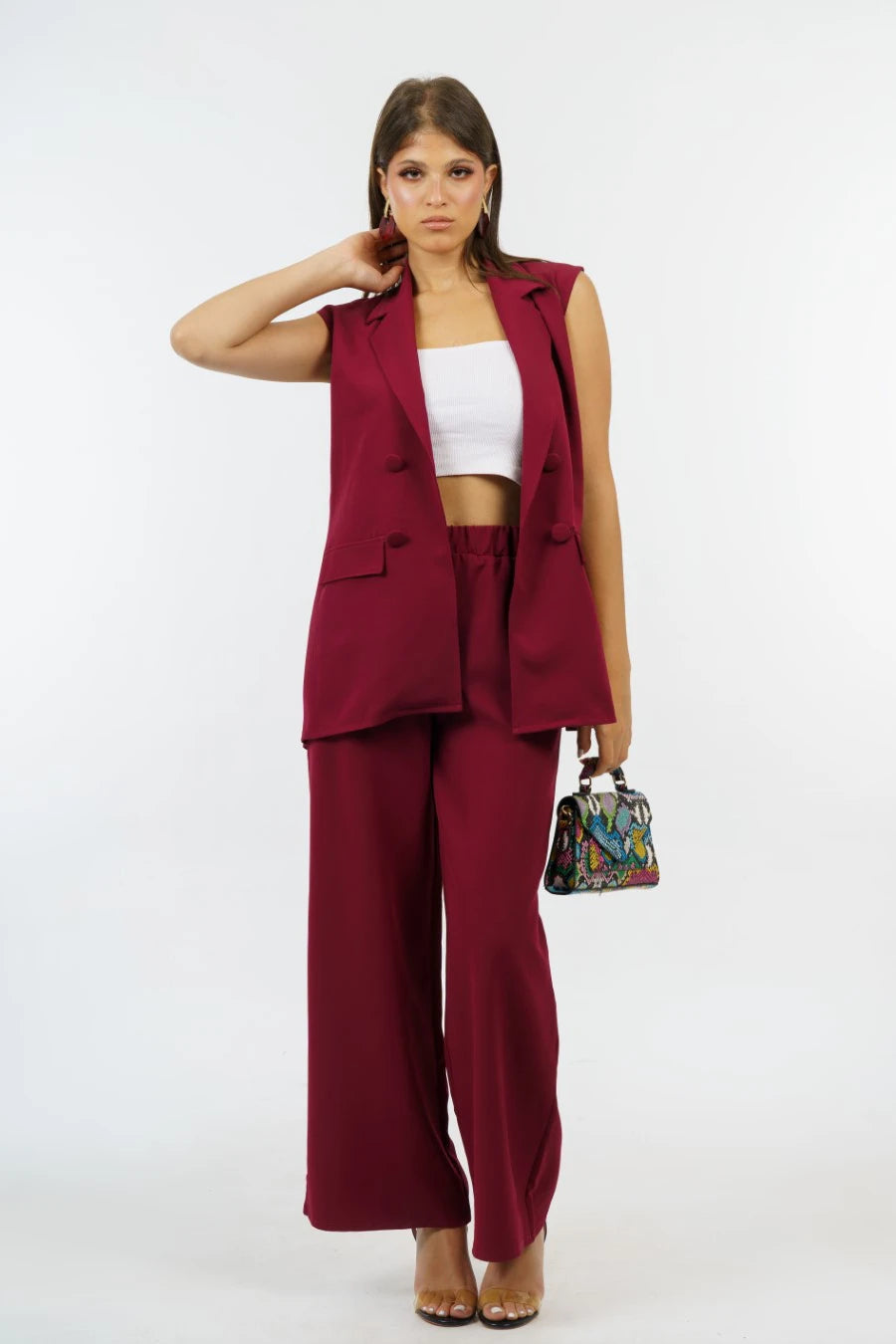 Transform your work attire with our Sleeveless Suit! This sophisticated and contemporary suit is ideal for making a statement at the office and displaying your self-assuredness and fashion sense. The sleeveless style adds an individualized twist to a traditional suit, resulting in a daring and empowering appearance. Leave a lasting impact with our Sleeveless Suit.