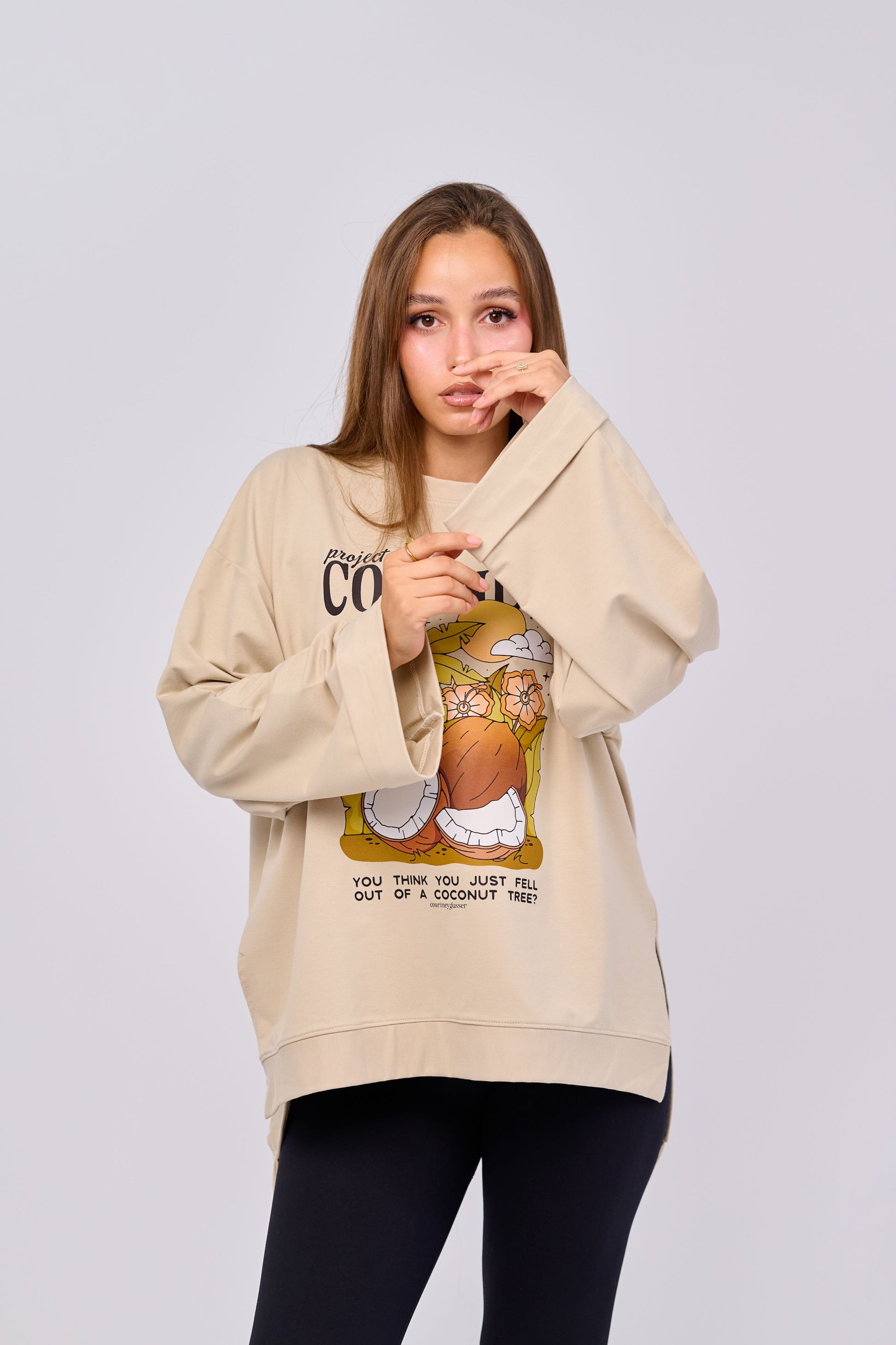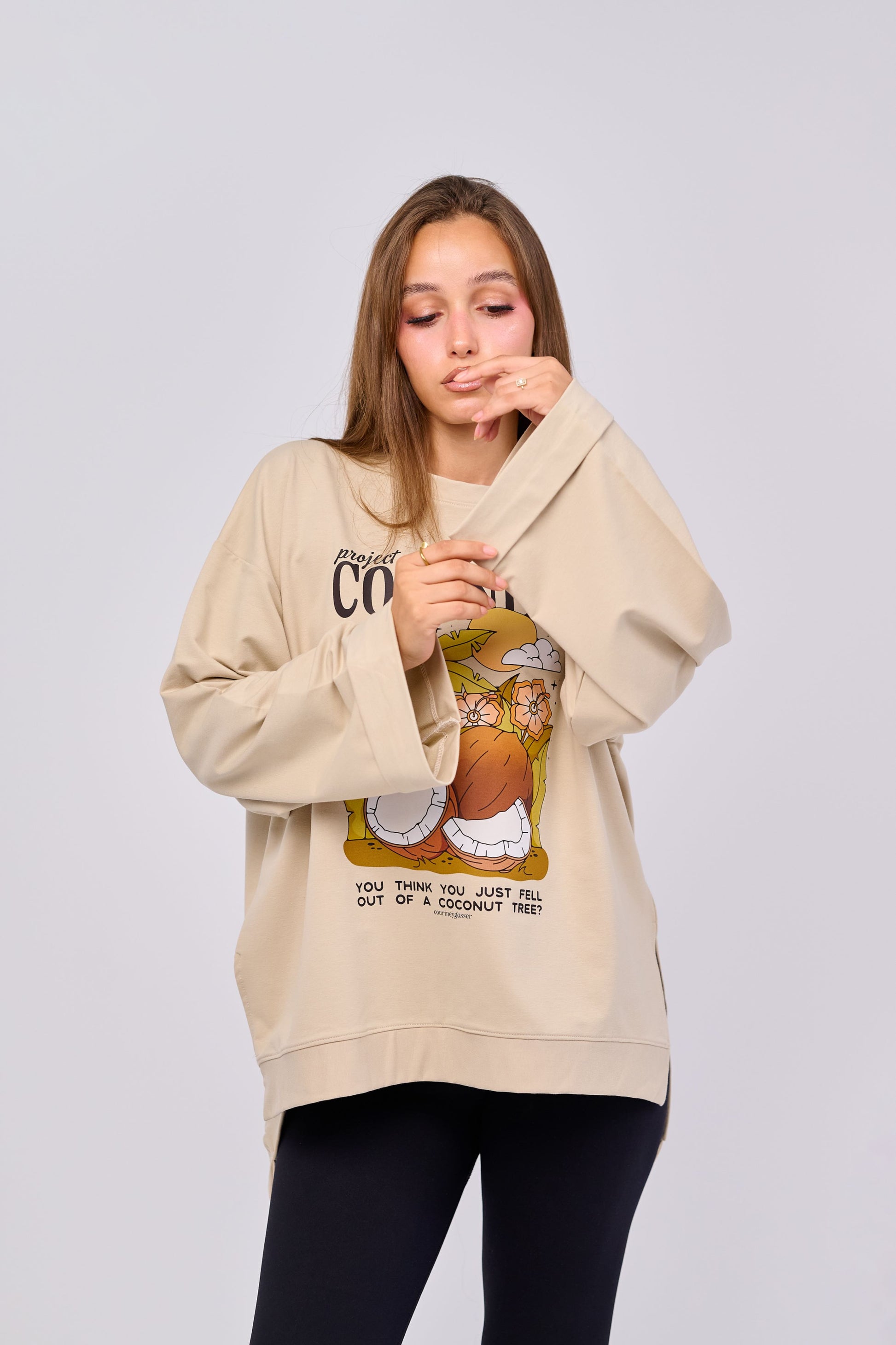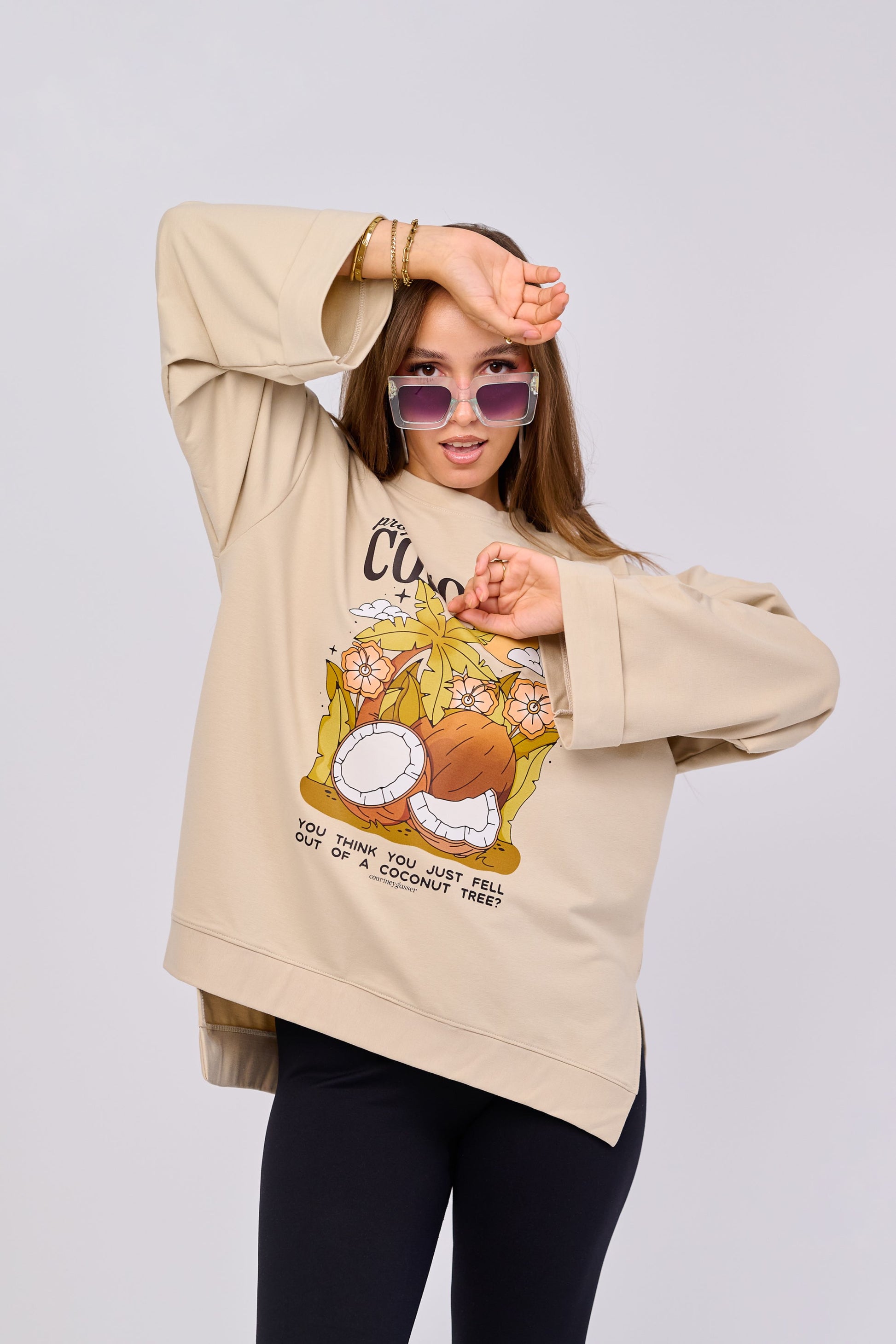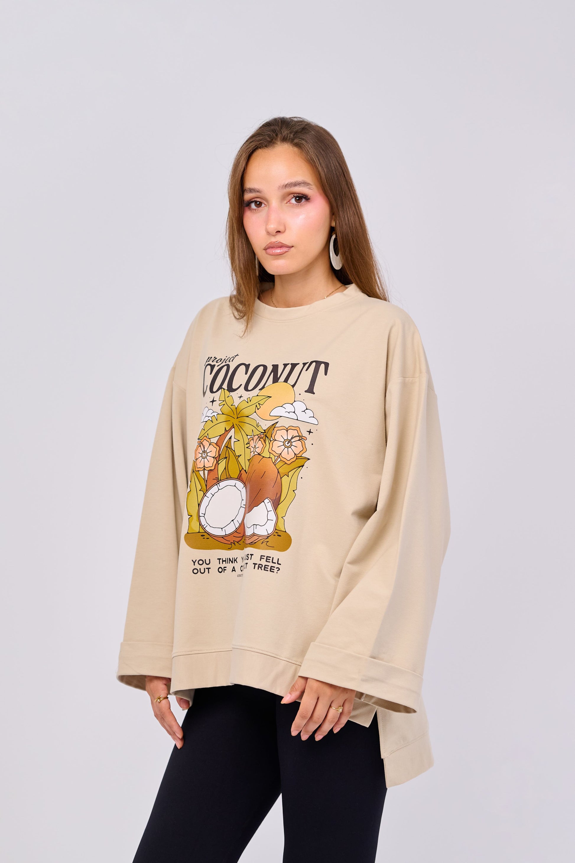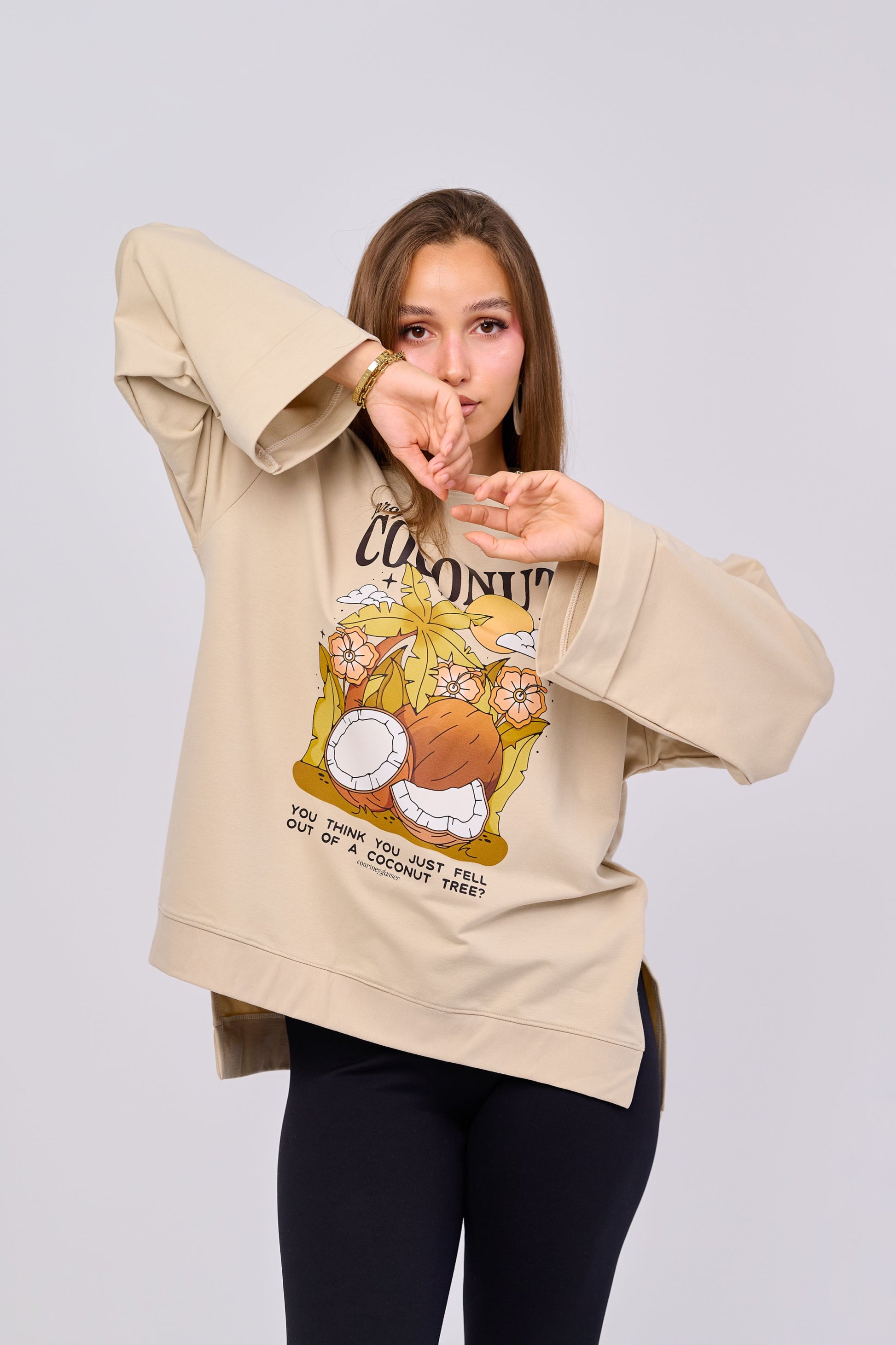 Coconut – Oversized Printed Cotton T-shirt | 100% Comfy Fabric – Long Back with Side Slits