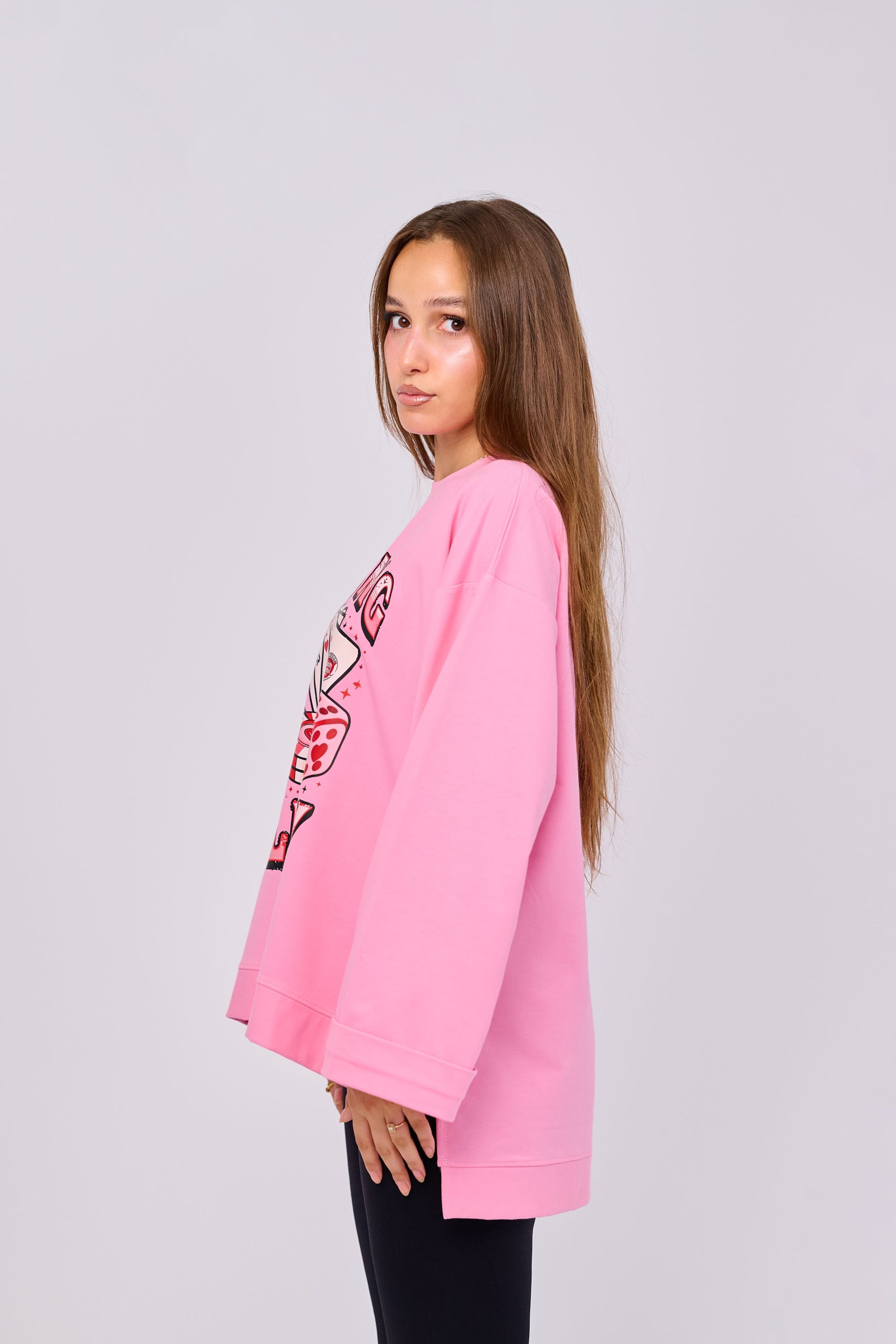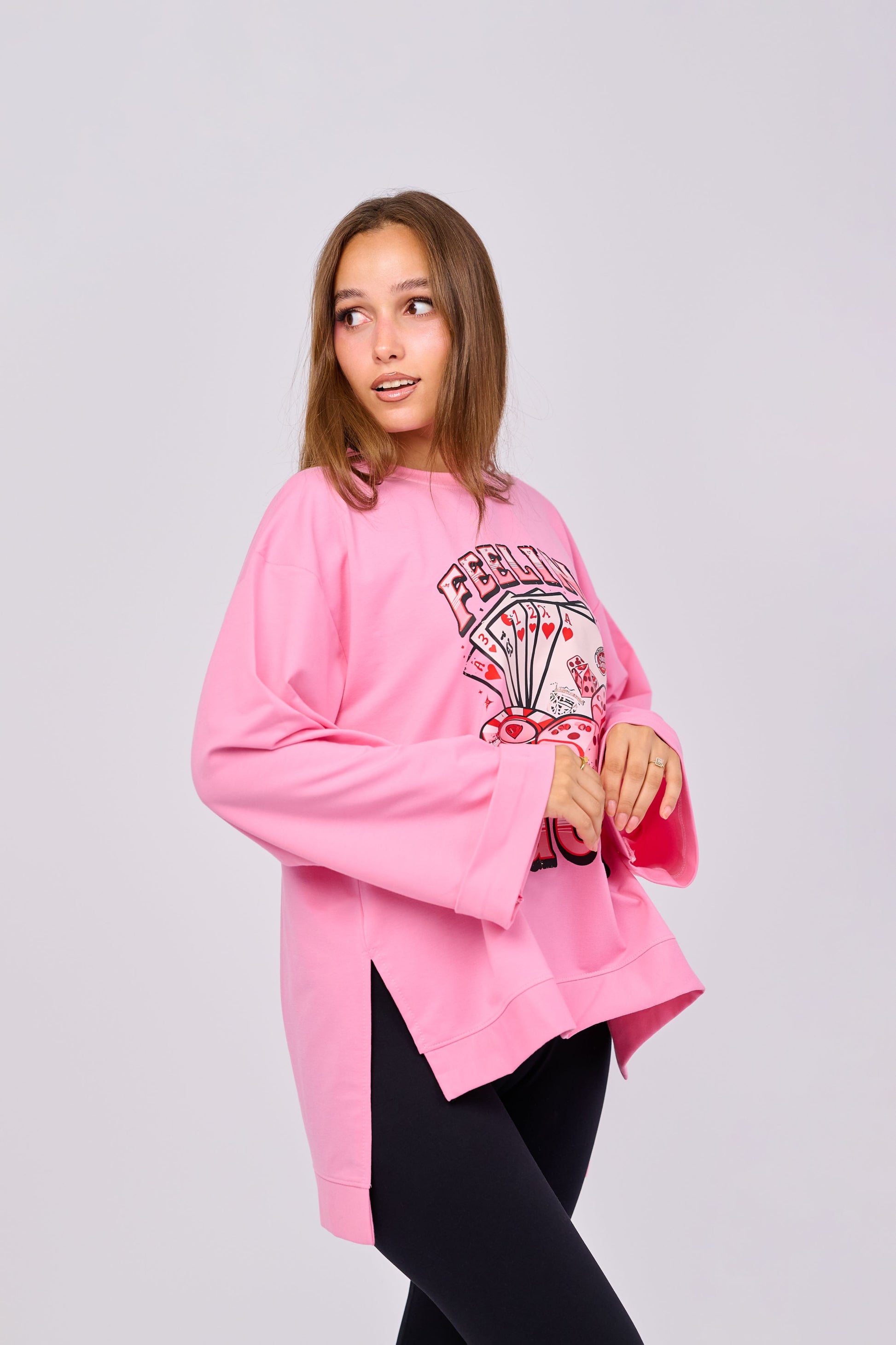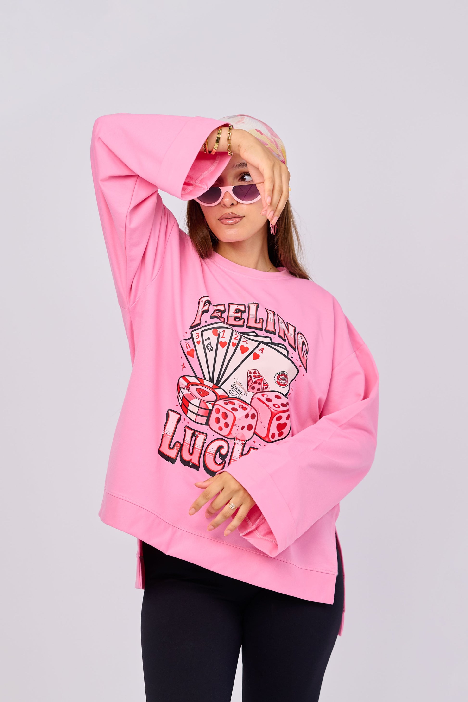 Feeling lucky – Oversized Printed Cotton T-shirt | 100% Comfy Fabric – Long Back with Side Slits