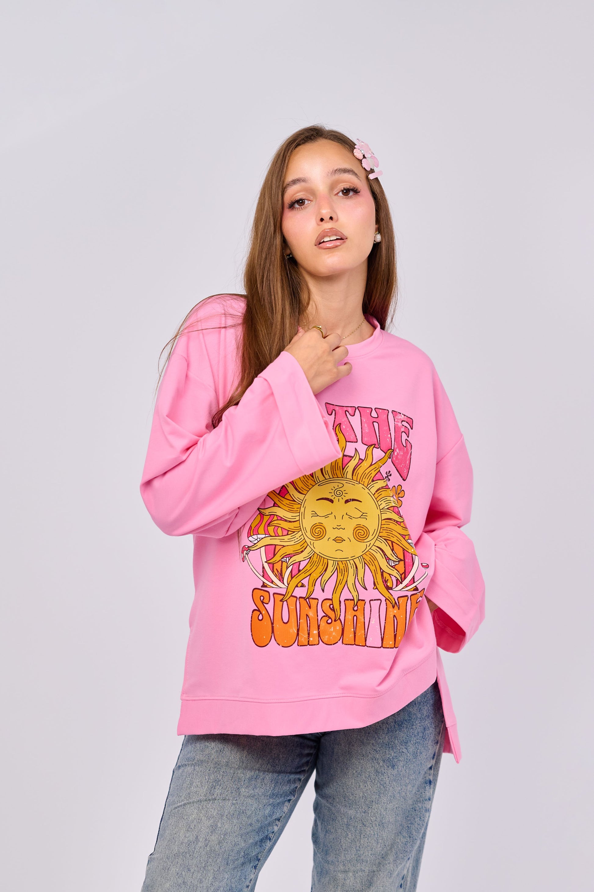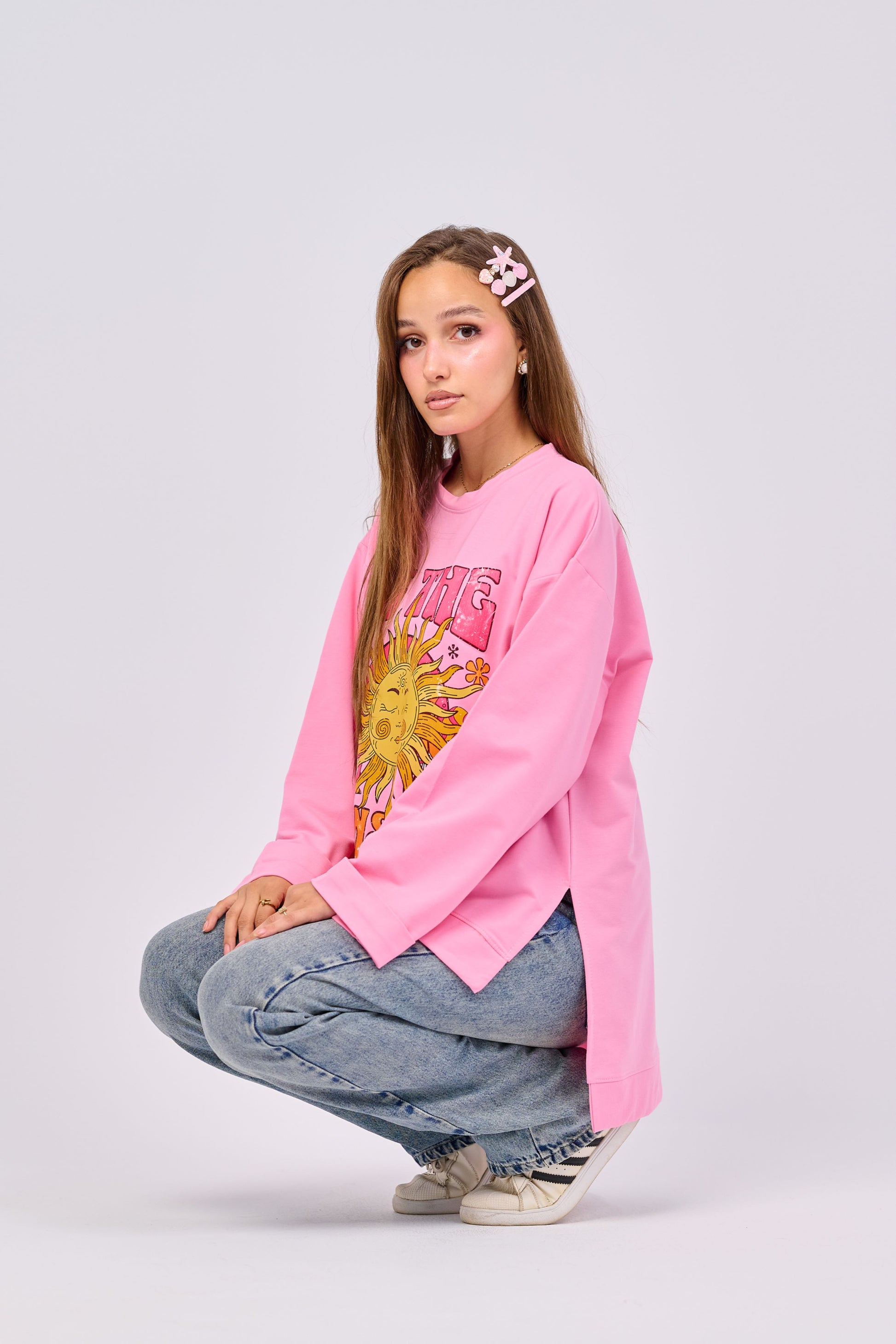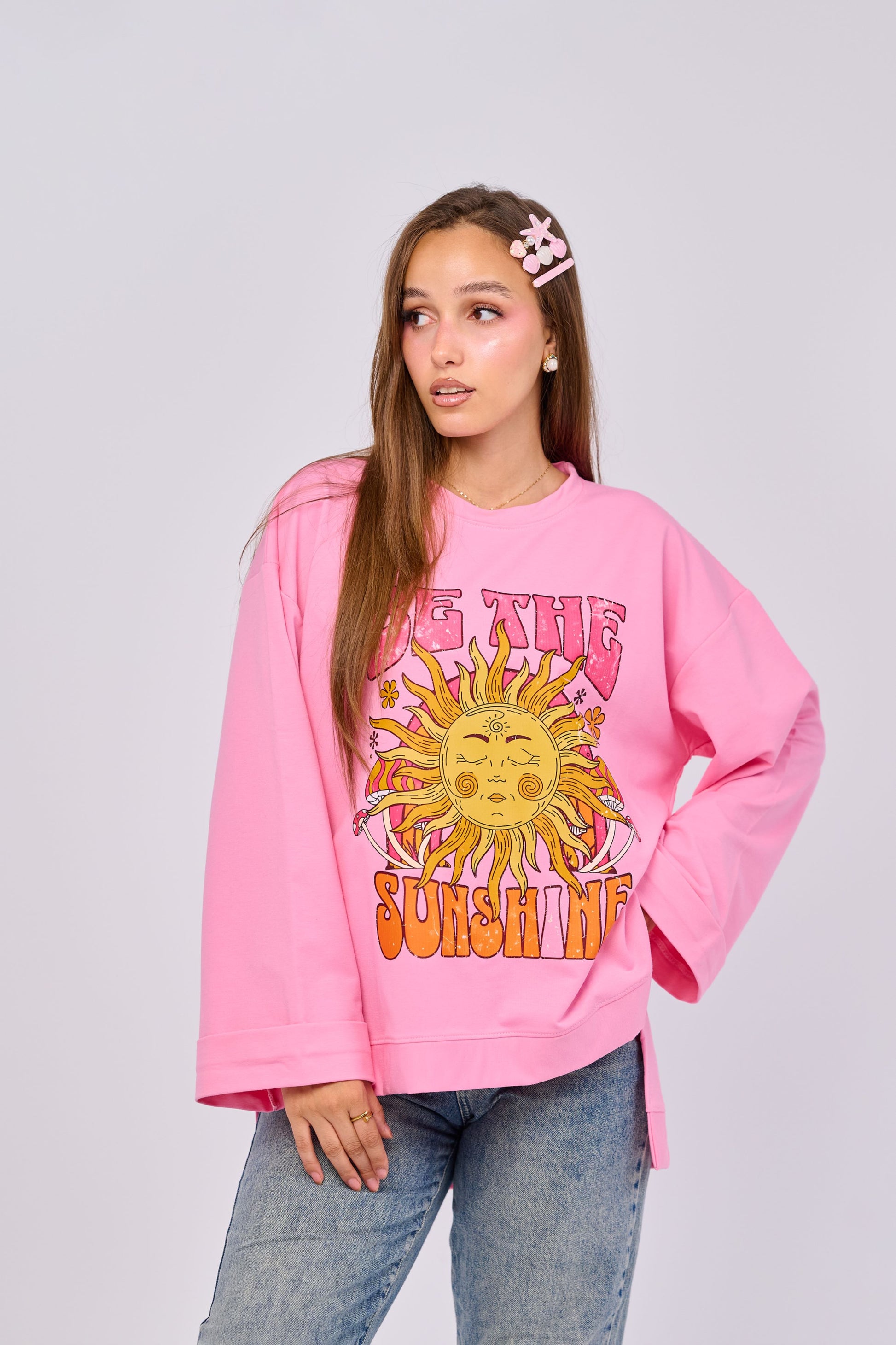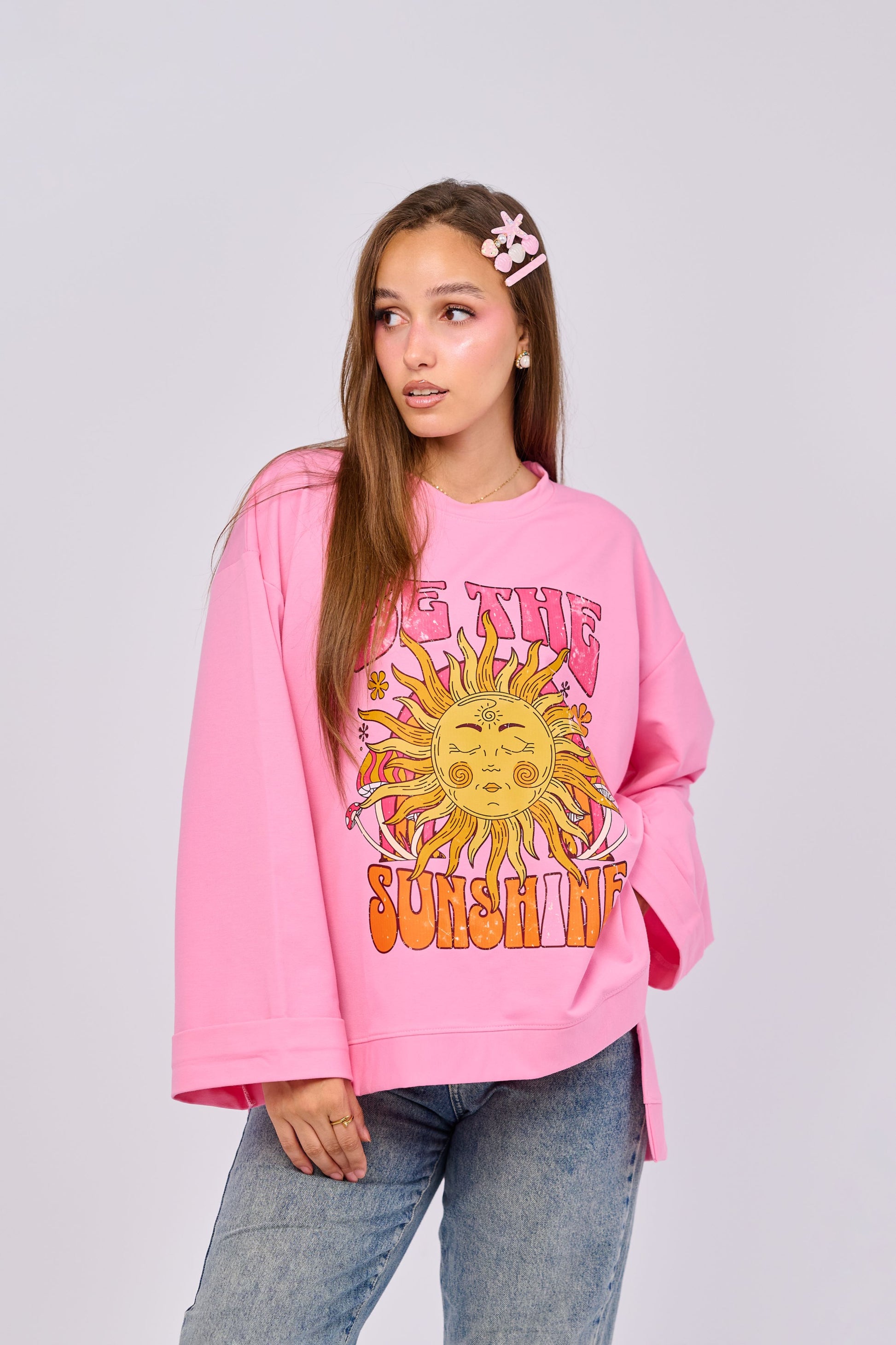 Be the sunshine - Oversized Printed Cotton T-shirt | 100% Comfy Fabric – Long Back with Side Slits