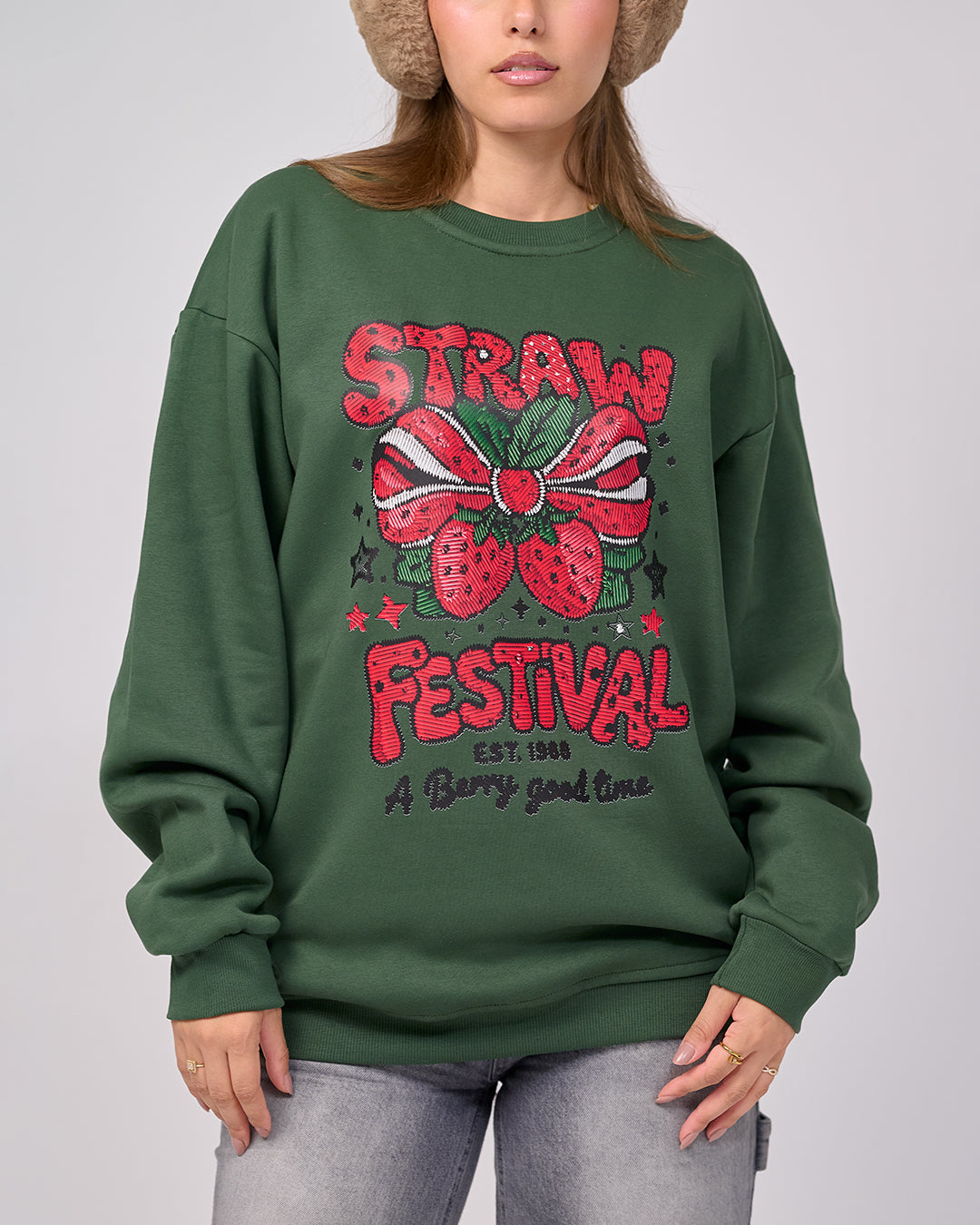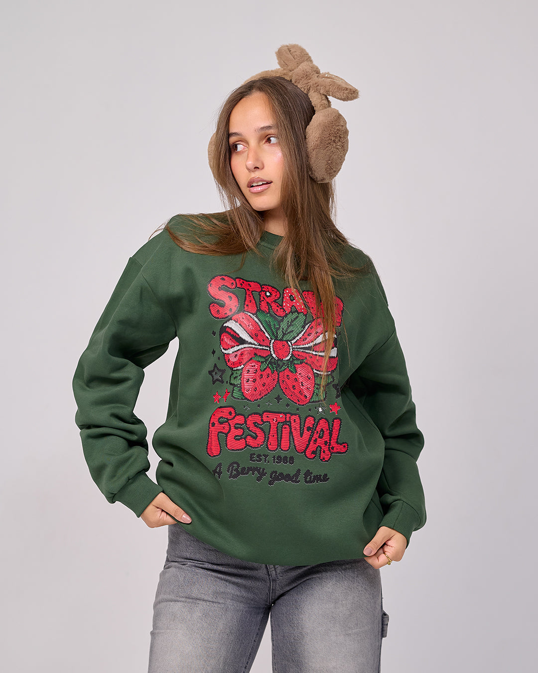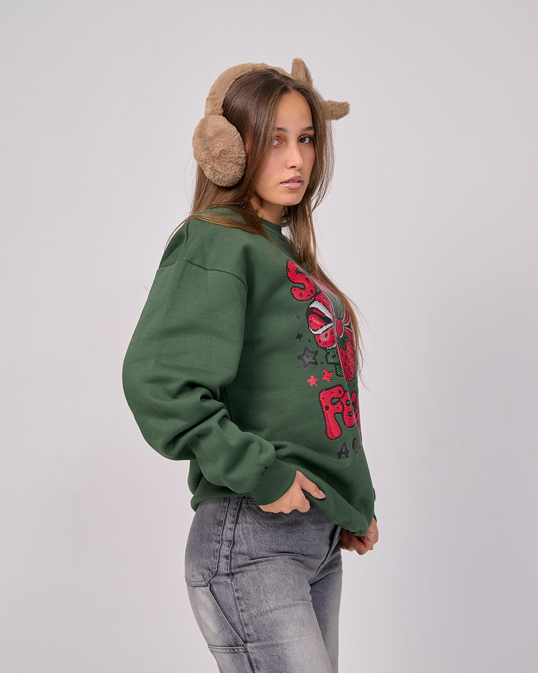 A cozy, playful sweatshirt that mixes comfort, warmth, and unique embroidered-effect artwork.