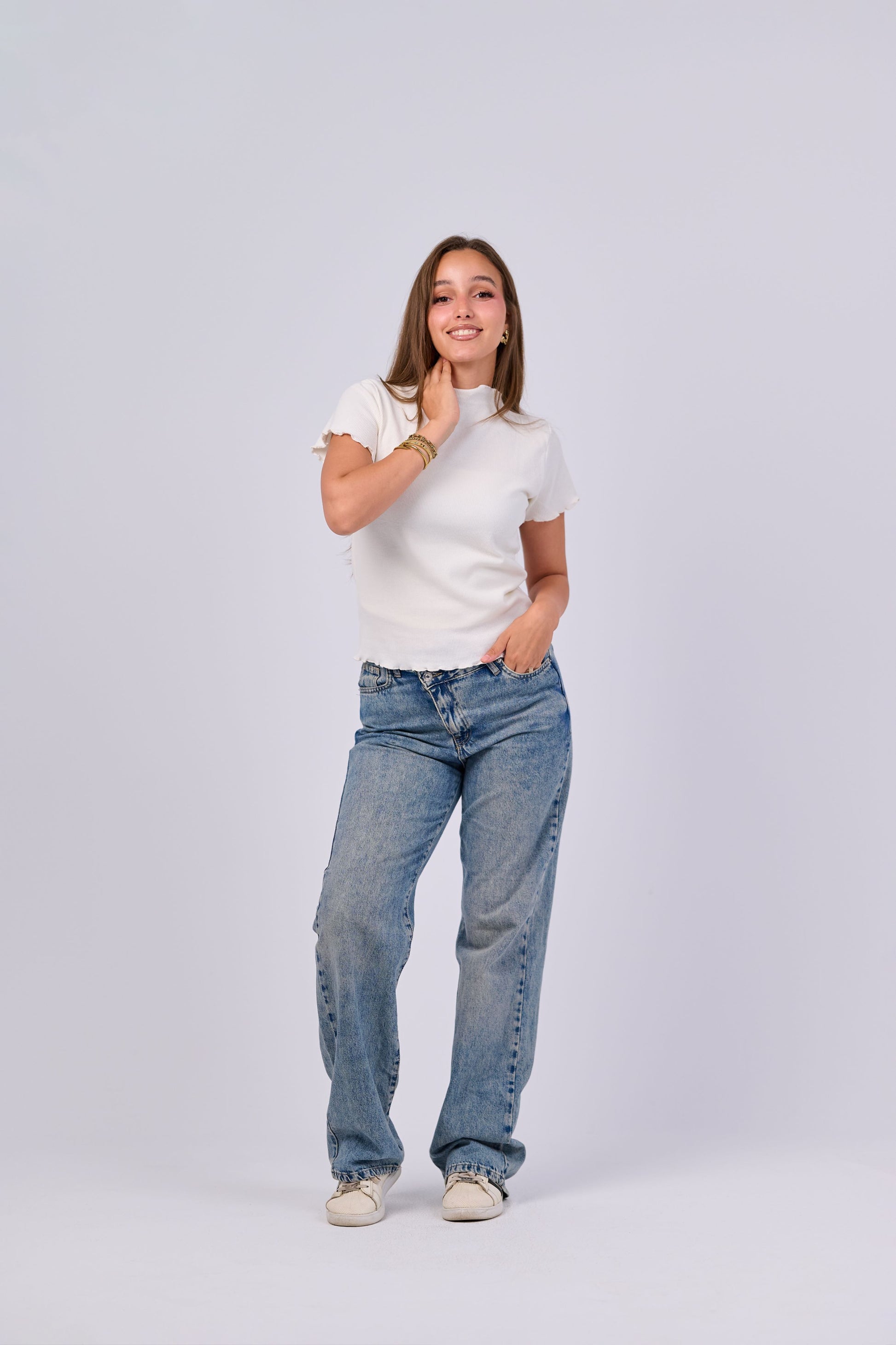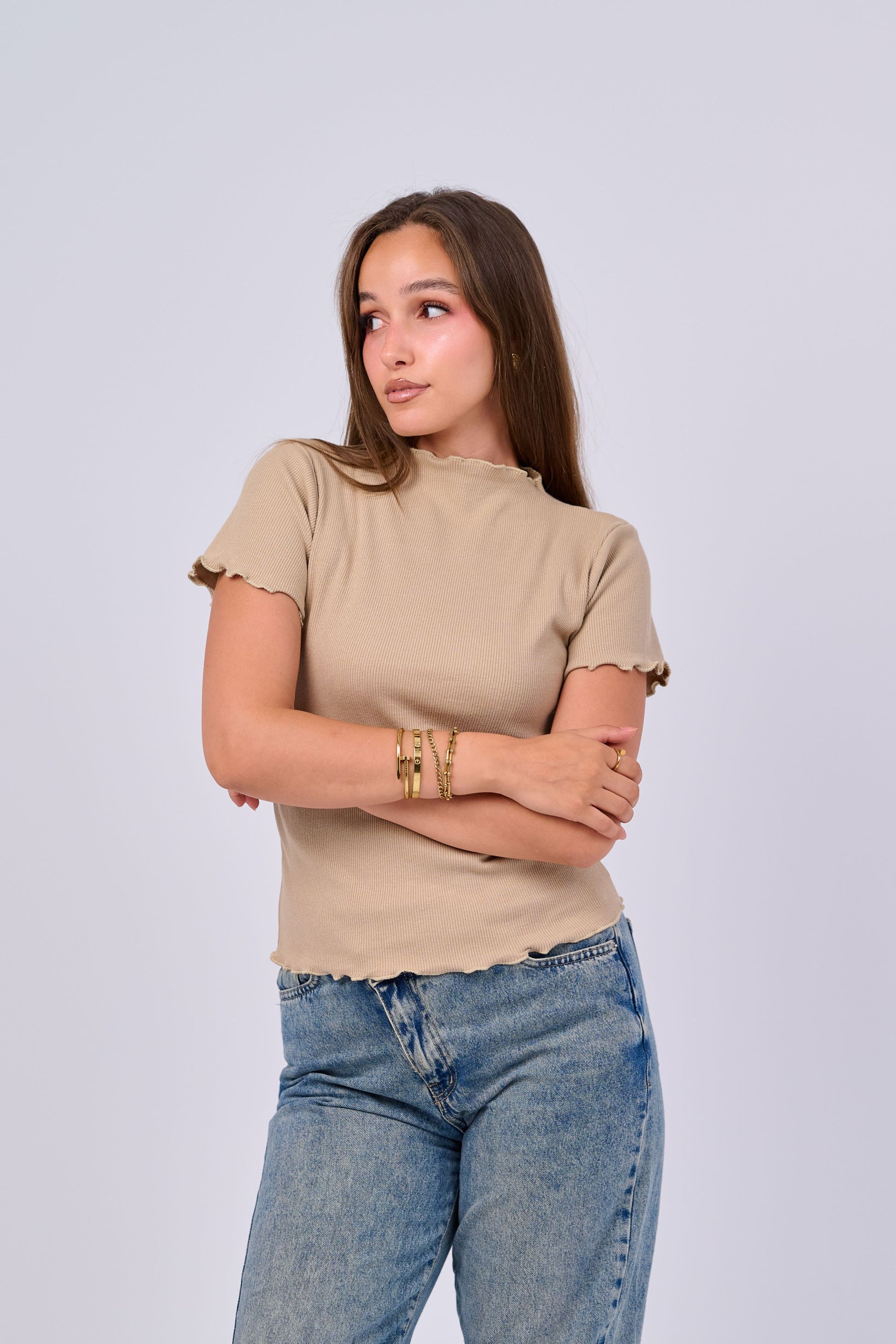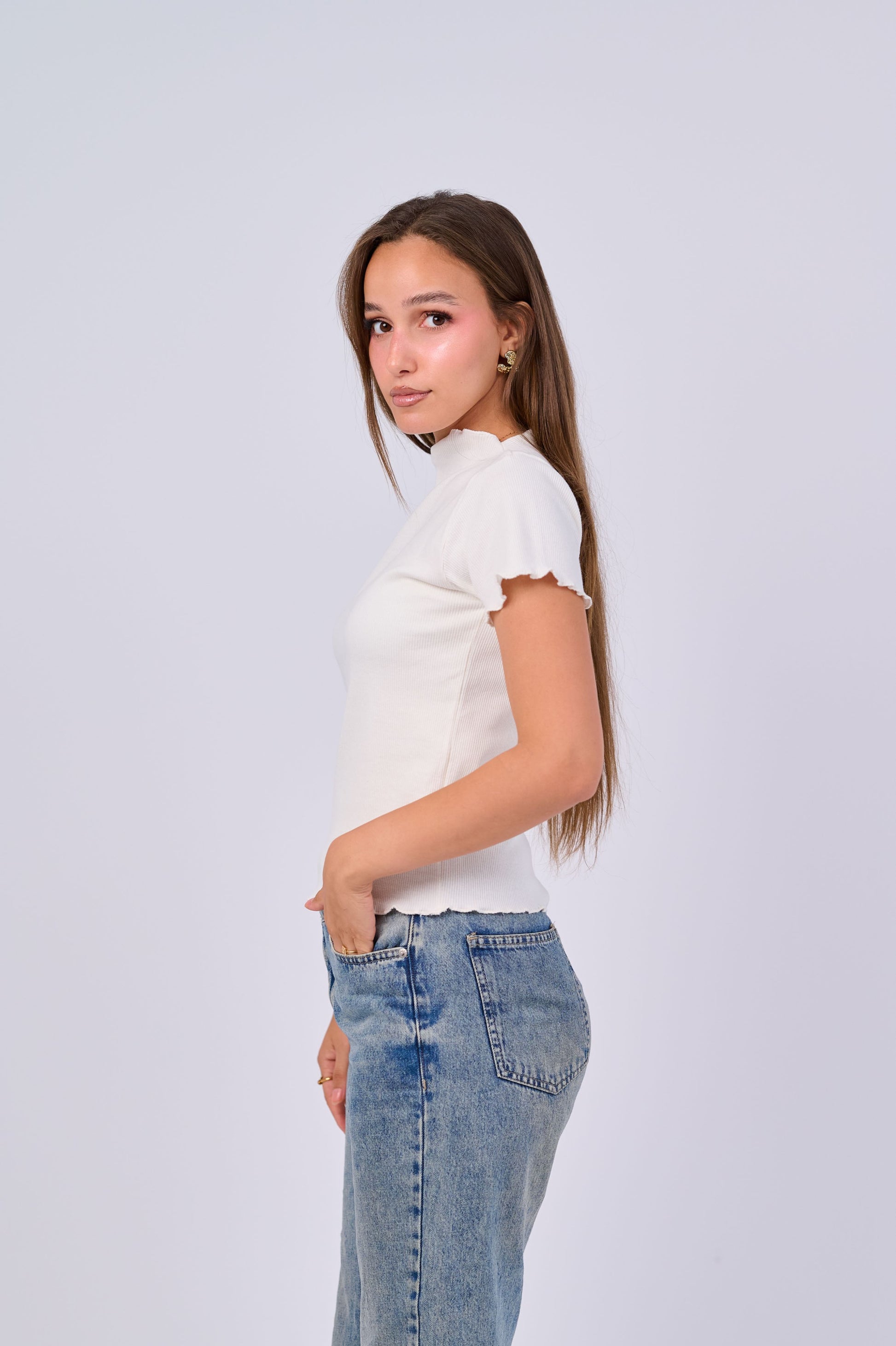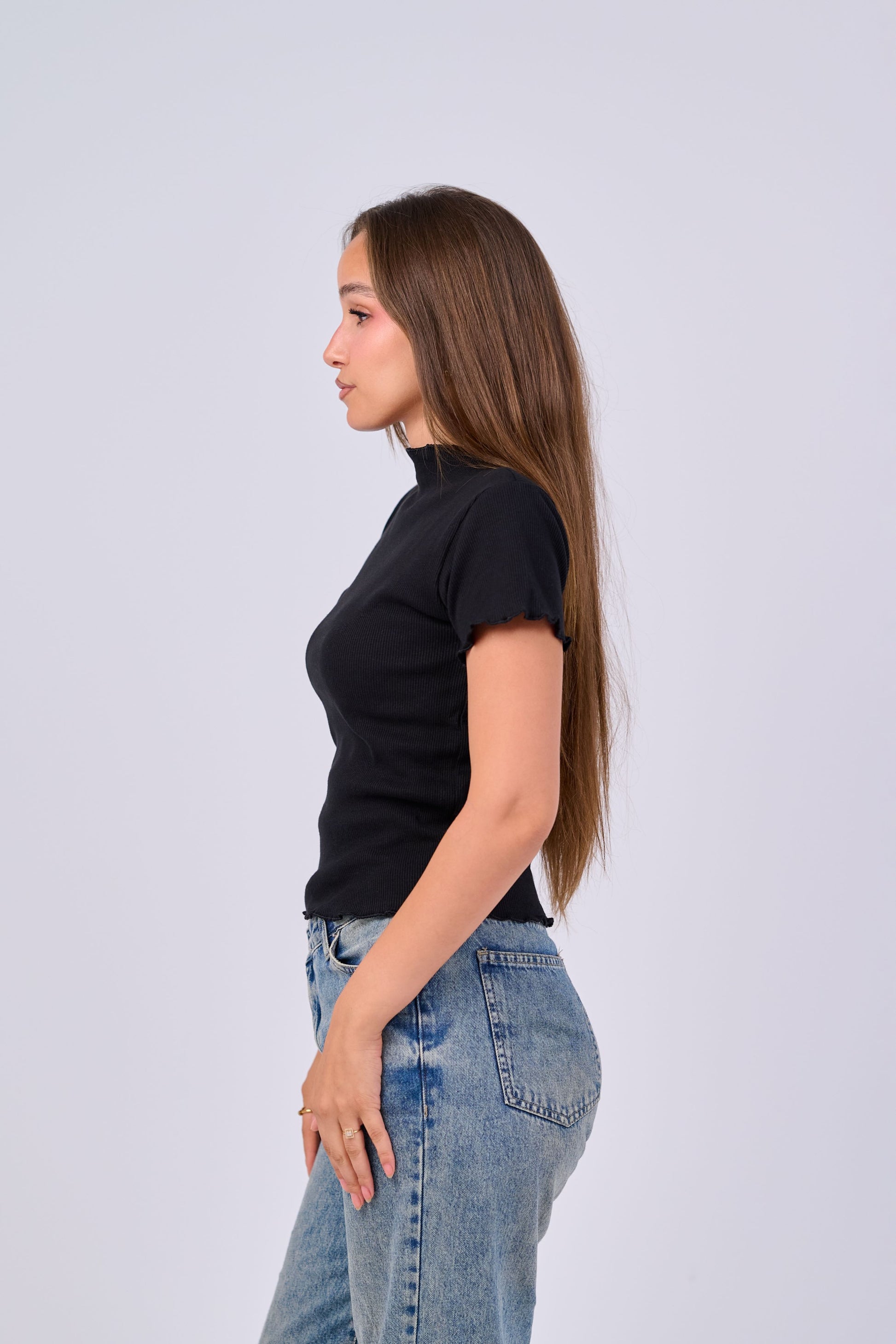 100% Cotton Ribbed Half-Sleeve Top – Fully Opaque